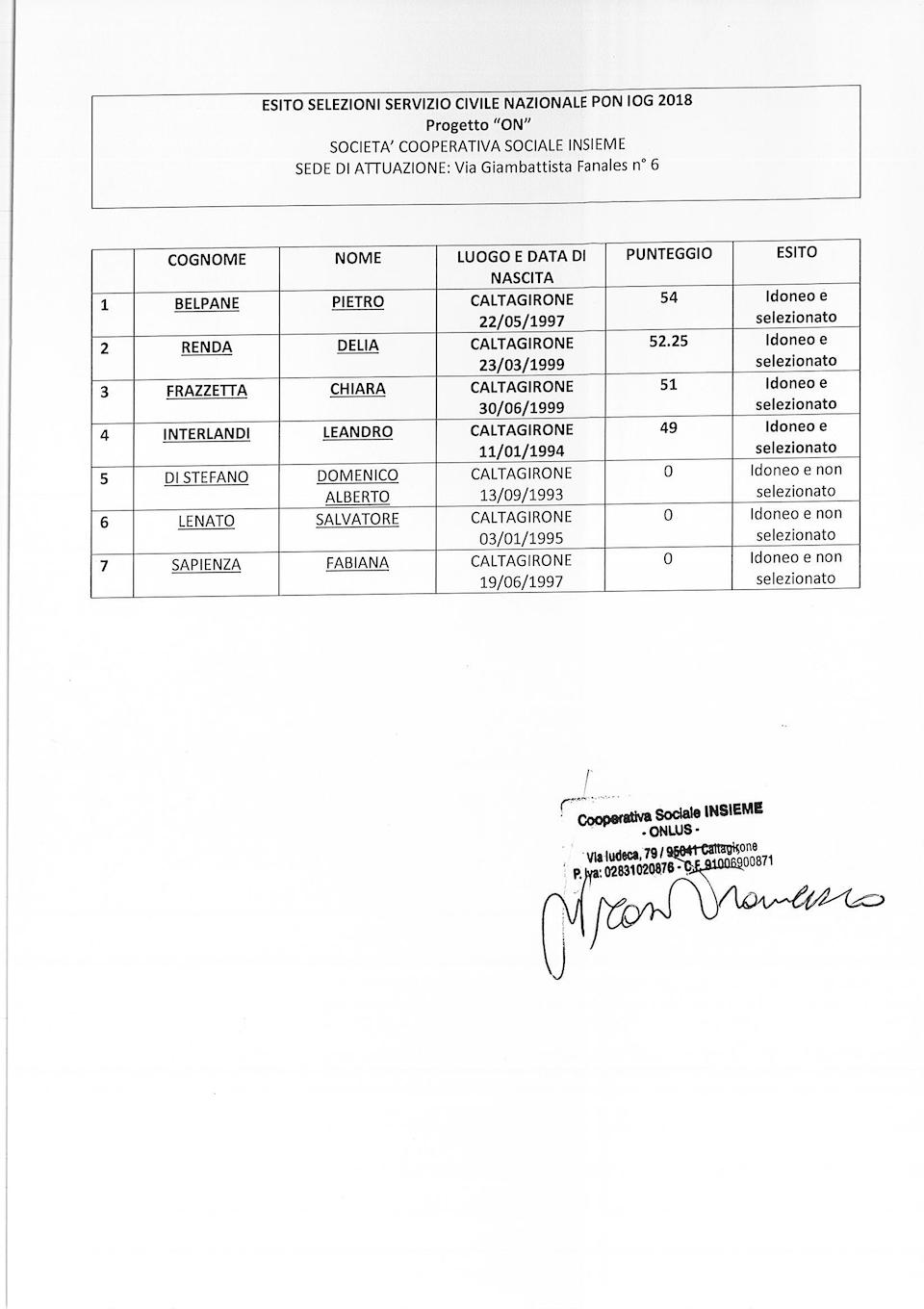 GRADUATORIA FINALE DELLE SELEZIONI DEL SERVIZIO CIVILE PON IOG
